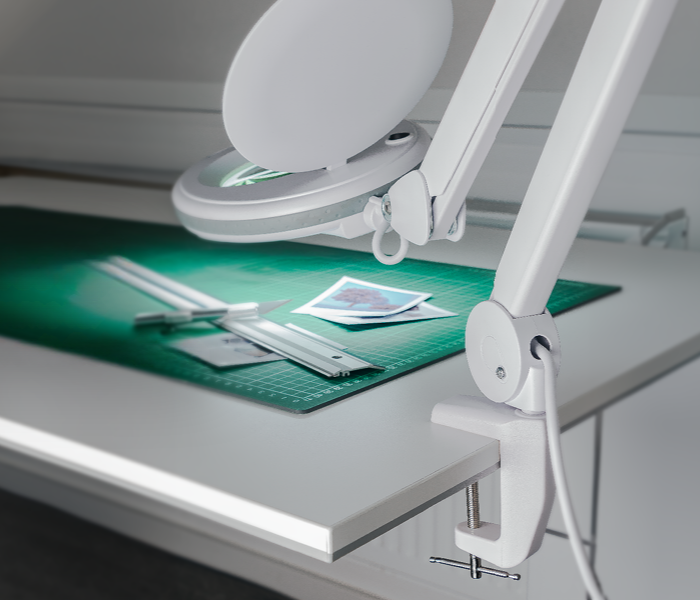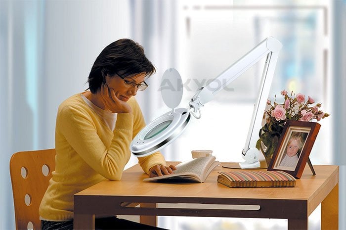6017 masaüstü ışıklı büyüteç; 5x merceği ve 90 adet led ışık gücü ile birçok alanda tercih edilen fakat sıklıkla kalıcı makyaj, cilt bakım, güzellik salonları, ince tamirat işleri, antikacılar gibi farklı birçok sektörde kullanılan masaüstü büyüteç çeşididir.