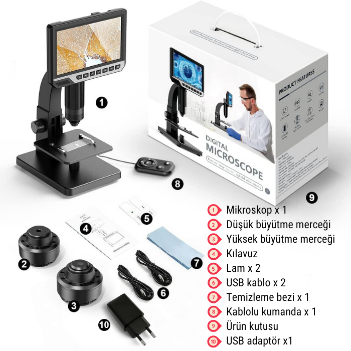 - Bu dijital mikroskop, devre kartı testi ve kontrolü, saat tamiri, tekstil sektörü kontrolleri, hatalı madeni para incelemesi, çocuk eğitim ve öğretimlerine yardım, biyolojik gözlemler (hücreler için uygundur), araştırmalar, değerli malzeme incelemeleri, hobi, bitkiler ve kalite kontrol incelemeleri için kullanılabilen bir cihazdır. Çocuklar, öğrenciler, koleksiyoncular, araştırmacılar ve mikroskobik dünyayı keşfetmek isteyen herkes için mükemmel bir üründür.