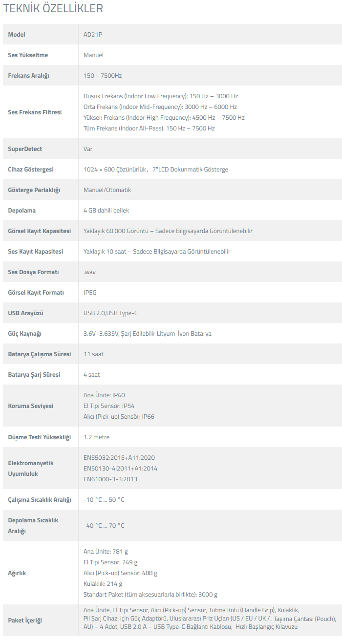 - AD21P dinleme cihazının en önemli özelliklerinden biri ; SuperDetect özelliğidir.