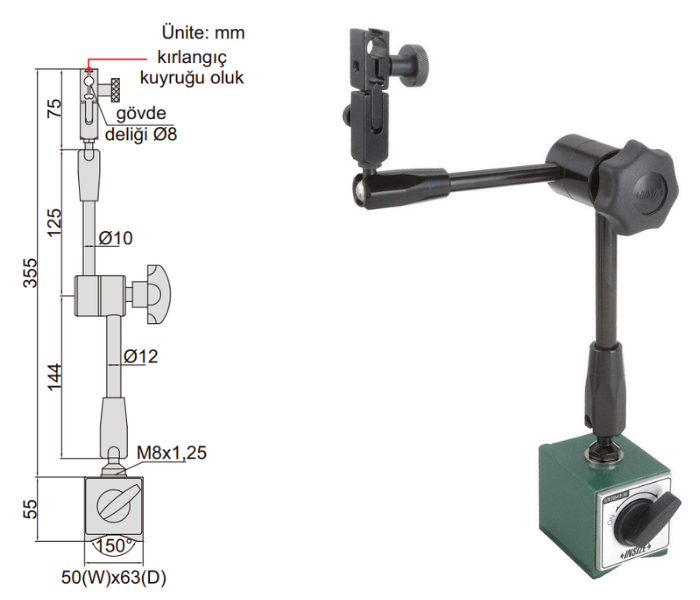 - Sağlam yapısı, kolay ayarlanabilirliği ve 80 kgf manyetik kuvveti ile endüstriyel ölçüm uygulamalarında güvenilir bir sabitleme çözümü sunar.