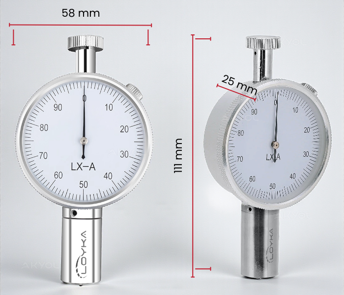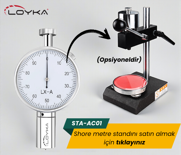 Loyka LX-A sertlik ölçüm cihazı (shore A şormetre); orta sertlikteki yumuşak malzemelerin sertliğini ölçmek üzere dizayn edilmiş analog shoremetre cihazıdır.