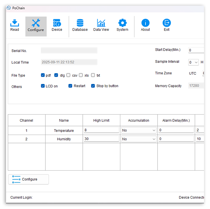 - Cihazın alt ve üst alarm limitleri, kayıt aralıkları ve benzeri birçok fonksiyon, bilgisayar yazılımı üzerinden kolayca ayarlanabilir. İlgili yazılıma, sayfanın alt kısmında yer alan bağlantıdan ulaşabilirsiniz.
