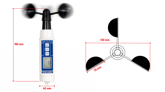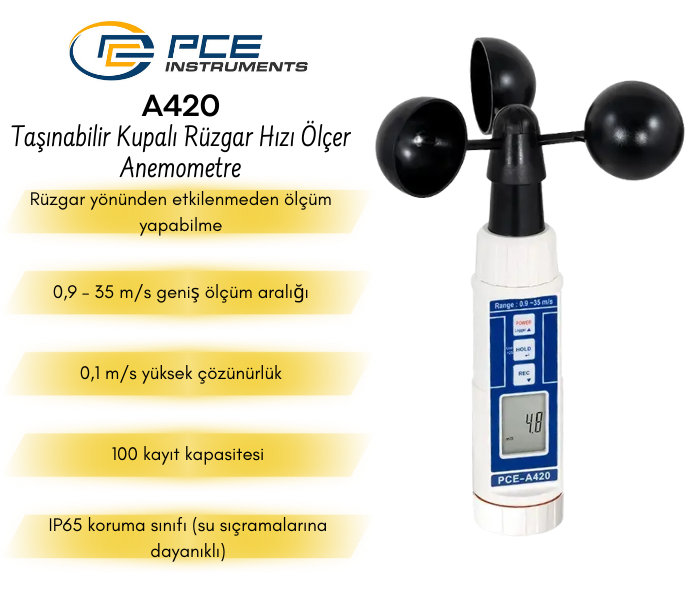PCE-A420 Taşınabilir Kupalı Rüzgar Hızı Ölçer Anemometre Özellikleri