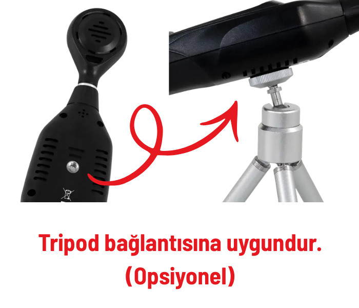 - Tripod montajına uygun tasarımı sayesinde uzun süreli ve sabit konumlu ölçüm uygulamalarında stabil kullanım imkânı sağlar.