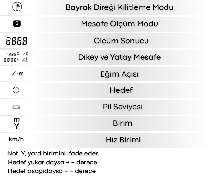 | Mesafe Ölçüm Birimleri | : | metre (m) / yard (Yd) |