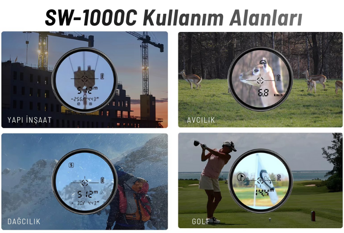 - Dış mekân kullanımı için özel olarak tasarlanan SW-1000C modeli; golf sahaları, mühendislik ve arazi ölçümleri, vinç konumlandırma, pozisyon kontrolü ve yaklaşılması zor hedeflerin ölçümü gibi birçok farklı uygulama alanında güvenle kullanılabilir.