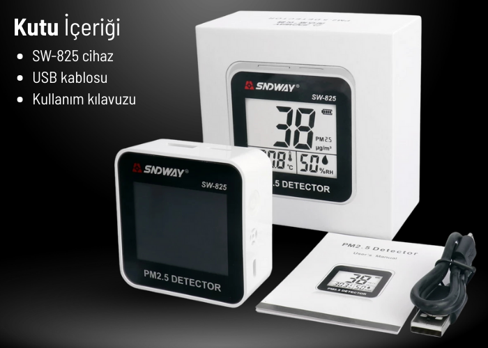 - Ailenizin ve sevdiklerinizin soluduğu havayı kontrol altında tutmak isteyenler için ideal olan SNDWAY SW-825, hava kalitesini izleyerek sağlığınızı korumaya yardımcı güvenilir bir ölçüm çözümüdür.