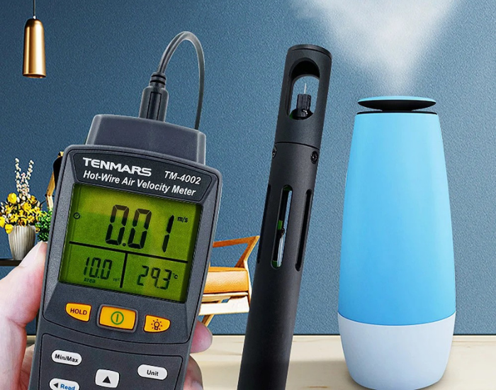 - Tenmars TM-4002 sıcak tel anemometre, kanatlı pervane anemometrelerin kullanılamadığı dar alanlarda, özellikle HVAC (ısıtma, havalandırma ve klima) kanalları ve menfezlerinde hava hızı ile hava sıcaklığı/nem ölçümlerini gerçekleştirmek için kullanılan bir cihazdır.