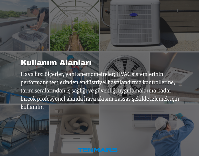 Havalandırma kanallarından çıkan havanın hız, debi ve sıcaklık değerleri en hassas şekilde gösterilir.