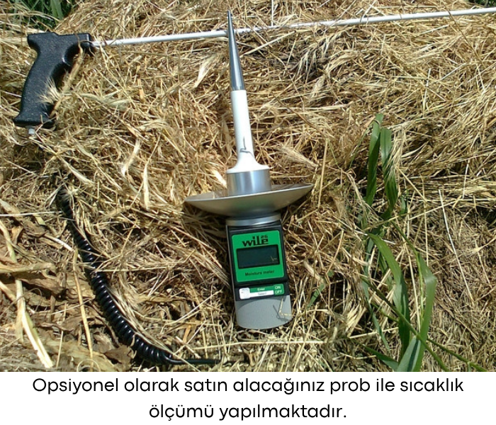 - Opsiyonel olarak satın alınabilecek Wile 651 sıcaklık probu ile samanın sıcaklık değeri de ölçülebilir. (Bu prob, paket içeriğine dahil değildir; ayrıca temin edilmesi gerekir.)